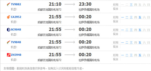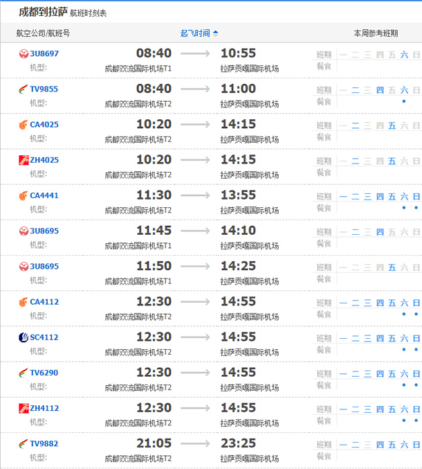 以上就是成都飛拉薩的航班時(shí)刻表,起飛時(shí)間,到達(dá)時(shí)間,及固定航班日期。